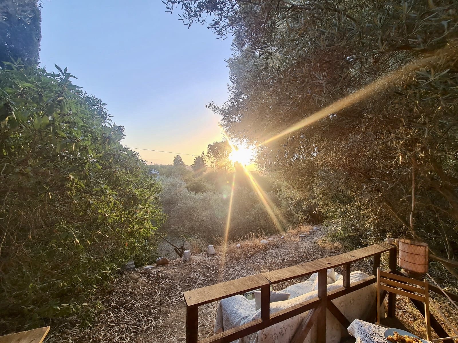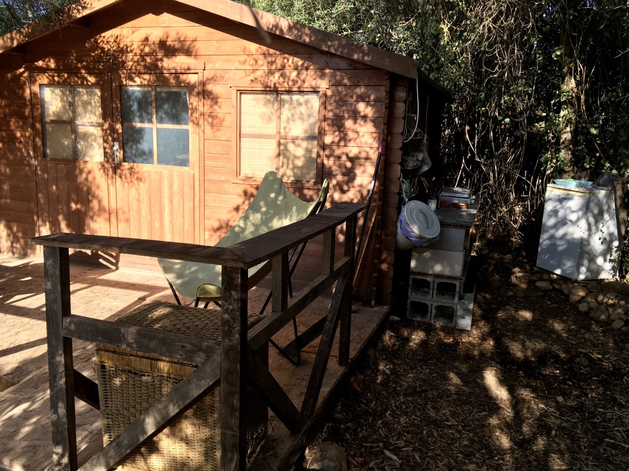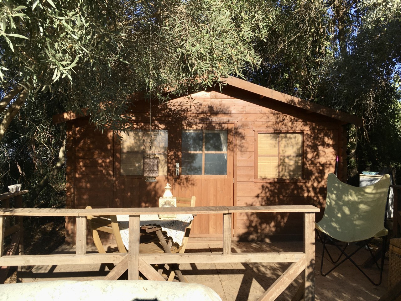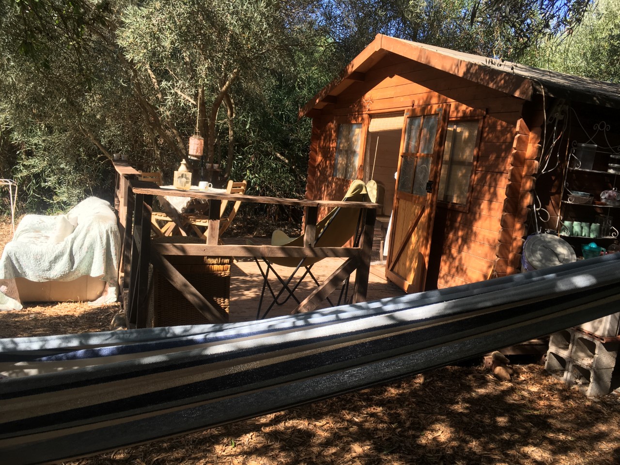 Our cosy wooden cabin, La Cabaña, is hidden underneath olive trees and other greenery for shadow and privacy and has spectacular views of the mountains and the sunset.