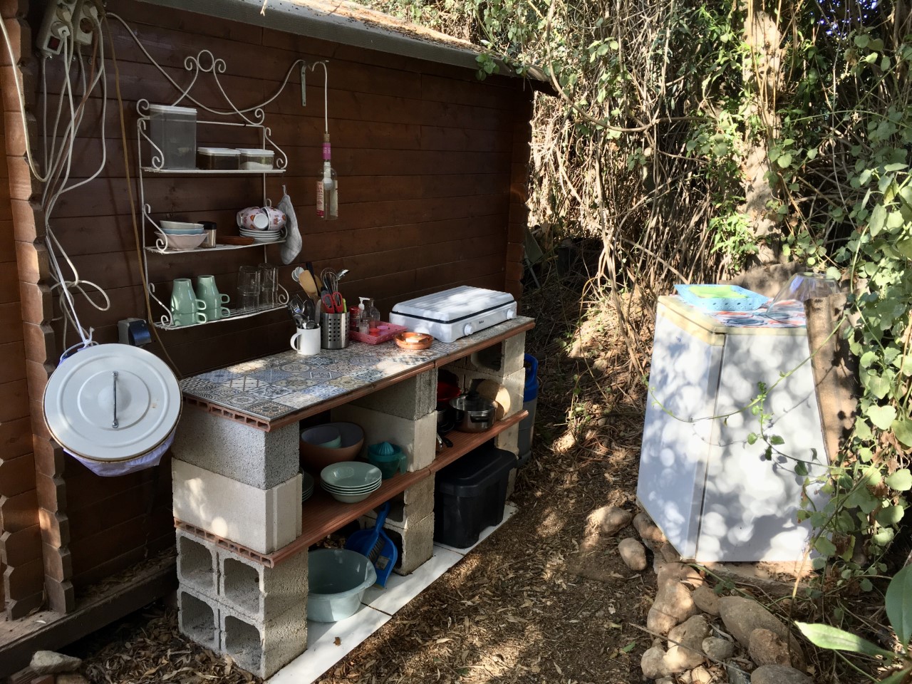 Next to the cabin you will find the outdoor kitchen with 2 gas hobs, a fridge, pans, tableware, cutlery, herbs & spices and everything else needed to make yourself a nice meal.